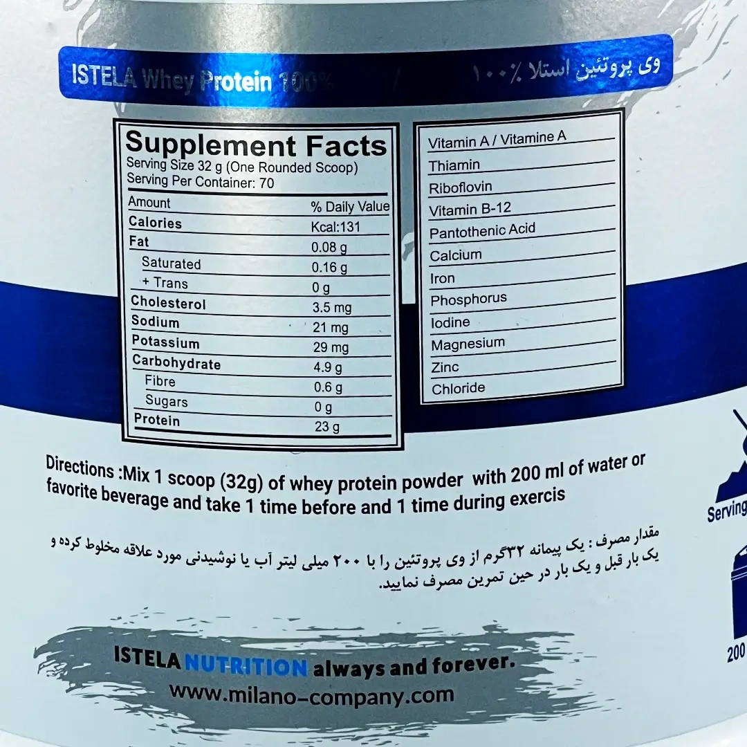پودر وی پروتئین ایزوله 100 درصد استلا ناتریشن مکمل بوده و جهت تشخیص، پیشگیری و یا درمان بیماری نیست.